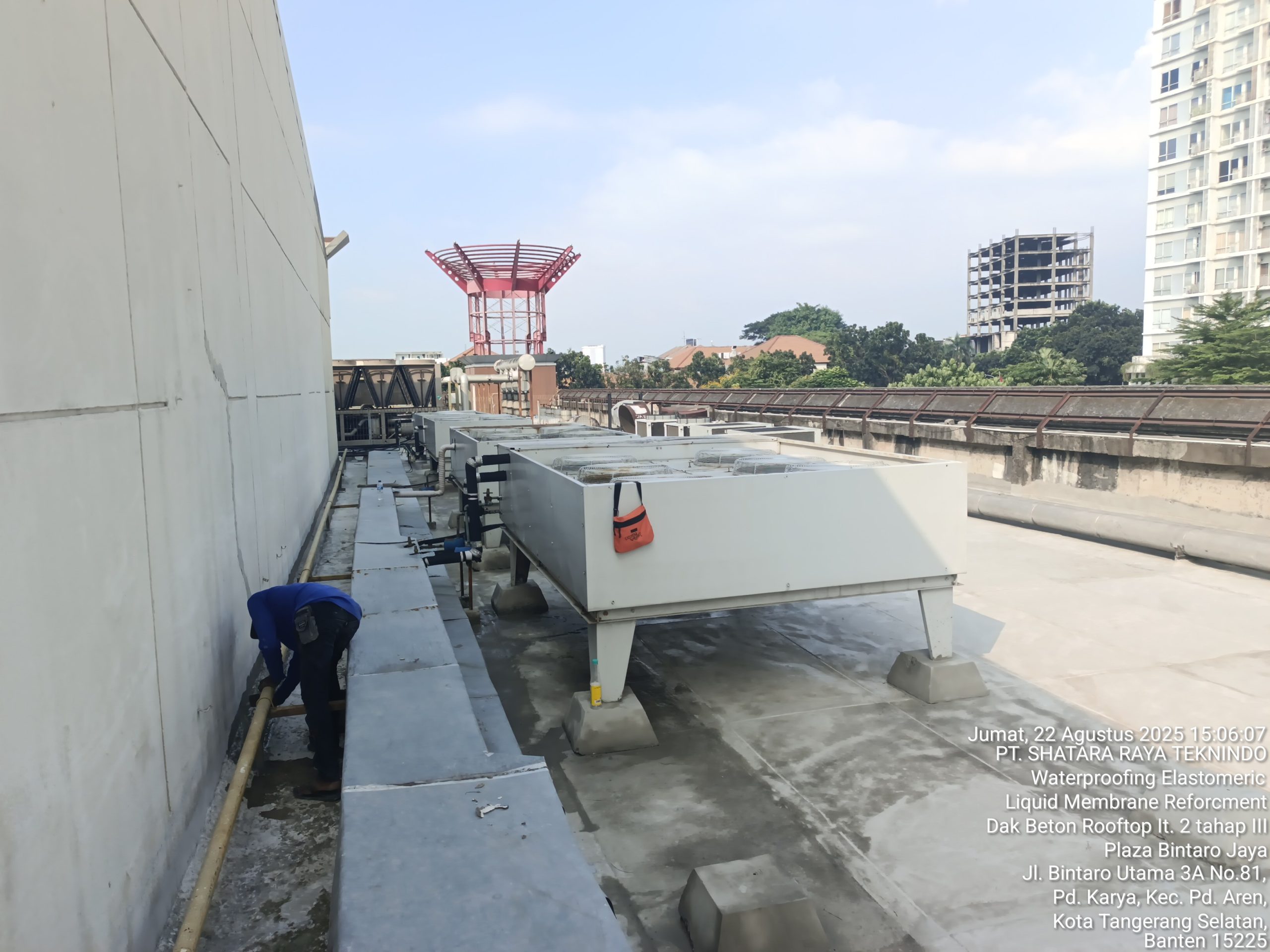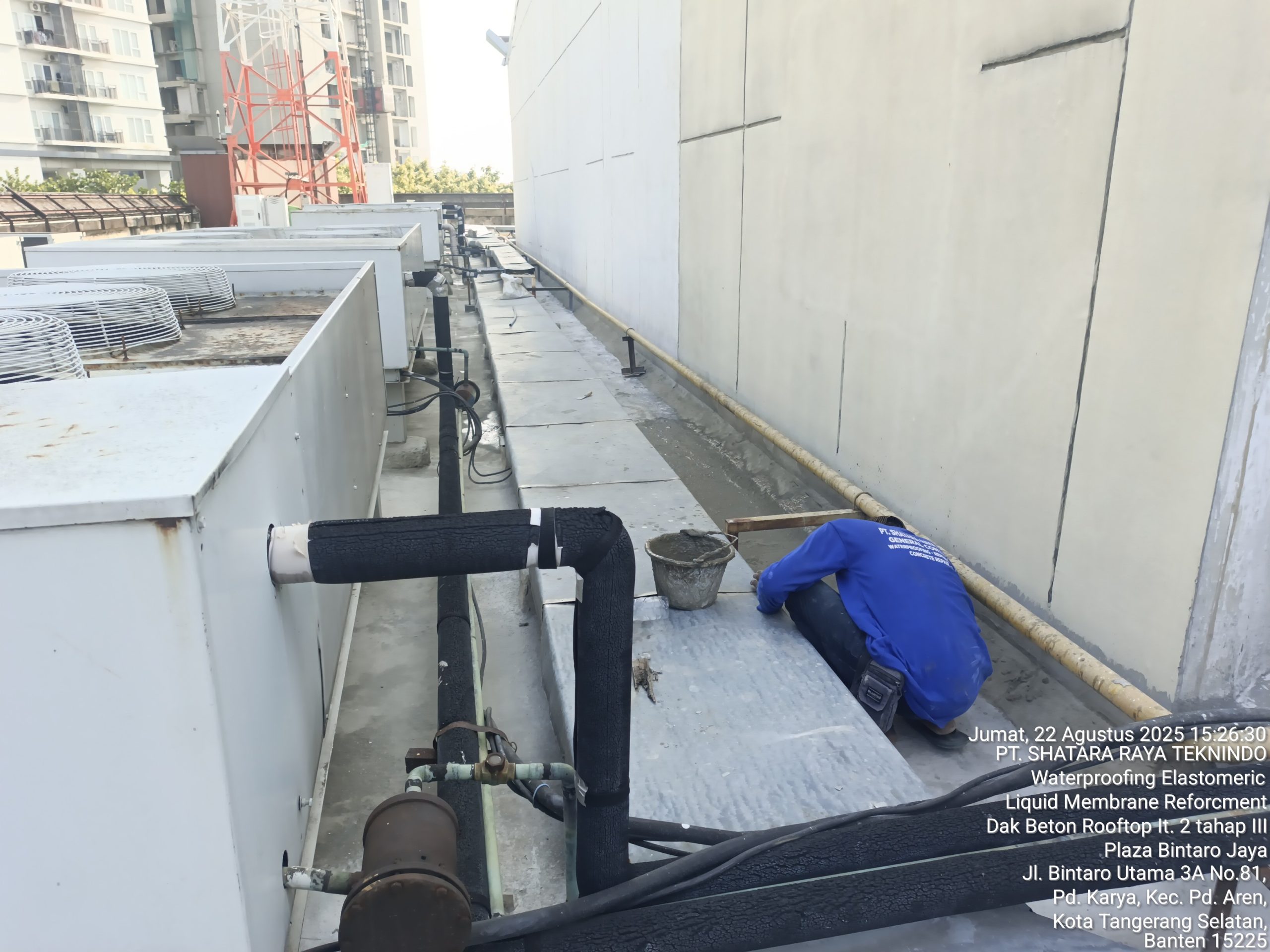 Nama Project : PEKERJAAN WATERPROOFING ELASTOMERIC LIQUID MEMBRANE REFORCMENT DAN SCREED DAN ATAP YOSHINYOYA DAN STEAK 21 GEDUNG PLAZA BINTARO JAYA