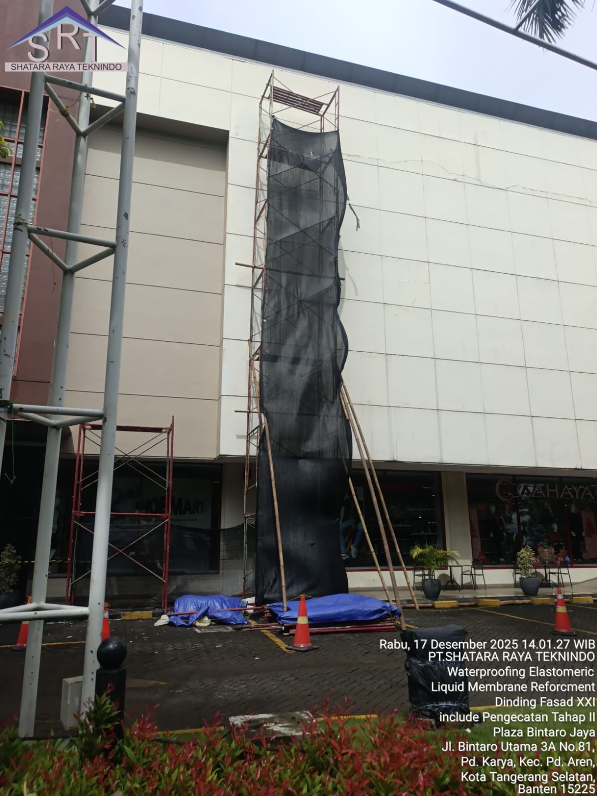 Nama Project : PEKERJAAN WATERPROOFING ELASTOMERIC LIQUID MEMBRANE REFORCMENT DAN PENGECATAN DINDING FASAD XXI TAHAP 2 MALL BINTARO PLAZA